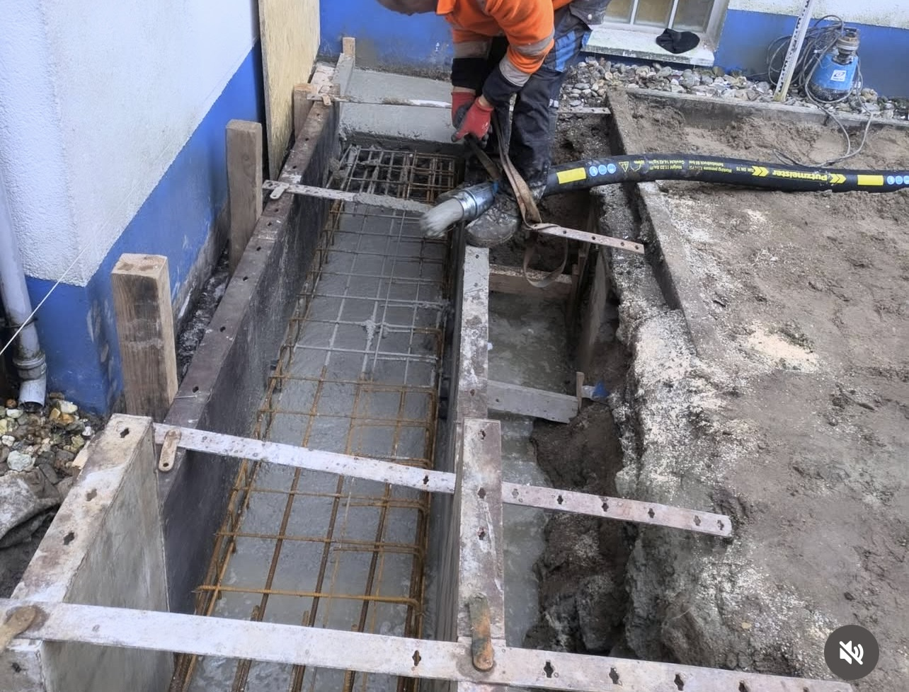 Kein Platz auf der Baustelle? Keine freien Termine für große Pumpen? Kein Problem – genau dafür haben wir unsere kompakte Betonpumpe im Einsatz.